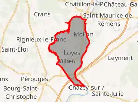 | Wikimedia Commons has media related to Villieu-Loyes-Mollon. |