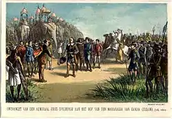 Vimaladharmasuriya I is referred to by four names by different sources. Rajavaliya[1] mentions his early name as Konappu Bandara and says he is the son of a Kandyan chieftain, Weerasundara Bandara of Peradeniya. Reports of early Dutch visitors Sebald de Veert and Joris van Spilbergen mention him as Don João da Austria.[2] Joao Rebeiro mentions one Don Juan Appuhamy, a commoner who was sent to conquer the kingdom of Kandy and of Konnapu Bandara. Historians have also noted that from 1604 to 1617 there is little information available as to what happened in the Kandyan Kingdom.[3] Therefore, there is the possibility of mixing up of several personalities by later historians in reconstructing the history of that period. As per the deed given by this king to the chief commander of Campaign of Danture, his mother's name is Kosbokke Gedara Vimalu, after whom he took up his name Vimaladharmasuriya.[4][5]