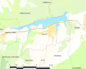 Vinça is located in the canton of Le Canigou and in the arrondissement of Prades.