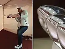 On April 9, 2019, Rob Gronkowski (who had retired from the New England Patriots two weeks before) used the Super Bowl LIII Vince Lombardi trophy as a bat to bunt a practice pitch from wide receiver Julian Edelman during the Boston Red Sox season opener where he was to throw the ceremonial first pitch with his former teammates.[10] It left a baseball-sized dent in the trophy – his third overall – and his former team's sixth.[11] The humorous documentary-style video released by the Patriots about the incident became popular, with special teamer Matthew Slater, who witnessed the incident first hand, saying that if anyone can get away with it, it would be the "[Super Bowl] MVP (Edelman) and the future Hall of Famer (Gronkowski)."[12] Patriots vice president of media relations Stacey James stated that "Maybe they’ll [the organization] fix it down the road. That’s something they can always fix in the future, but at least for now, we’re going to keep the dent and tell the story."[13][14]