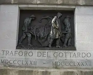 The influence of Lorenzo Bartolini’s work led to the adoption of a naturalistic approach and the early 1840s saw a number of figures in contemporary dress in obvious contrast to the classical approach still dominant in sculpture. Francesco Hayez played an active part in securing prestigious commissions for him from the liberal aristocracy and bourgeoisie of Lombardy, above all for works of a patriotic nature alluding to the Italian political situation. After a short stay in Rome, he enlisted in 1848 to serve as a volunteer in the first war of independence. He then moved to Turin, where he held the chair in sculpture at the Albertina Academy, in 1852. His repertoire of funerary monuments, portraits and public works drawing inspiration from the struggle for national liberation proved a great success also in France, where his work dedicated to the last days of Napoleon’s life won a prize at the Paris Universal Exhibition of 1867 and ensured his renown. He returned to Ligornetto in the same year and took up residence in the villa built to house the works from his studios in Turin. His mature production is characterised by a repertoire of portraits and funerary monuments, and includes a naturalistic relief dedicated to the 199 workers killed during the construction of the Gotthard Rail Tunnel (1882–83).