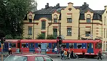 Vinderen Station was established as one of the original stations along the Holmenkollen Line when it opened on 31 May 1898. Its original name was Blindernveien, although that name was scrapped only a few months later.[1][2] It was placed at the intersection between Slemdalsveien and Rasmus Winderens vei.[3] With the arrival of the line, Vinderen was opened up for housing development. Although some came immediately, it was first in the 1920s and 1930s that most of the area was developed.[4] At the station area the first major development was Conditorigården in 1902, which still stands and was placed across the street from original platforms.[3]