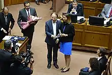 ![]() Violette Impellizzeri receiving award by the Chilean Senate | |