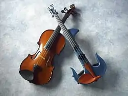 The instrument which corresponds to the violin in the violin octet is the mezzo violin, tuned the same as a violin but with a slightly longer body. The strings of the mezzo violin are the same length as those of the standard violin. This instrument is not in common use.[27]