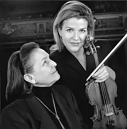 ![]() Anne-Sophie Mutter (right), the dedicatee and first soloist, in 2007 with Aida Stucki | |