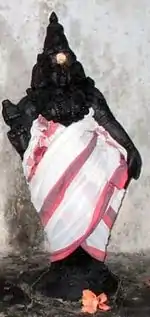 A legend says that after Sundarar insulted the devotees, Viralminda Nayanar pursued Sundarar with his axe. When Sundarar was just within the grasp of Viralminda, Thyagaraja rescued Sundarar by hiding him in the temple wall. A shrine (ottu thiyagaraja shrine) marks the event and spot where Viralminda is worshipped in the Thyagaraja_Temple.[7]