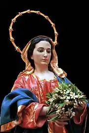 The festivity date is 1 May. The sculpture is carried from Beniaján to the hermitage, crossing gardens and fields, in a folk procession.