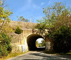 Virginian Railway Underpass is a historic concrete arch bridge located at New Ellett, Montgomery County, Virginia. It was built in 1906, and is a single circular barrel underpass constructed of cast-in-place concrete. The underpass at ground level is 14 feet 6 inches (4.42 m) in width with a total head room of 12 feet 9 inches (3.89 m).[3]