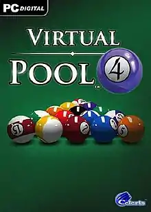 Virtual Pool 4[lower-alpha 1] is a sports simulation video game developed and published by American studio Celeris as an entry in the Virtual Pool franchise, a sequel to Virtual Pool 3. The game was initially released on Windows in August 2012. It was released to Steam on May 11, 2015 worldwide,[3] after a period on Steam Greenlight.[4] The game has two releases, an offline version of the game,[5] and an online multiplayer version.[lower-alpha 2][6][7] The game has also had an additional iPad release.[8]