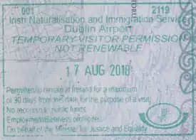 - "Immigration permission for non-EU/EEA & non-Swiss nationals". Department of Justice and Equality. 21 August 2017. Retrieved 2 April 2020.
