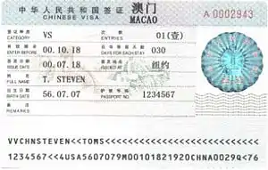 Holders of a travel document issued by Portugal to non-citizens who are unable to obtain national passports are also exempt from possessing a visa to enter Macau for a maximum of 30 days.[6]
