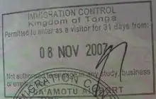 Tonga entry stamp