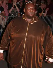 On June 17, 2007, Viscera was sent from the Raw brand to ECW in the supplemental section of WWE's draft.[37] Three weeks later, he debuted on ECW, repackaged as Big Daddy V, a "hired muscle" character in the employ of Matt Striker, arriving just in time to help Striker in his rivalry with The Boogeyman.[38] After disposing of The Boogeyman, Big Daddy V defeated Tommy Dreamer in the ECW brand's Elimination Chase to become the number one contender for the ECW Championship at No Mercy.[39] There, he lost to CM Punk by disqualification, when Striker interfered in the match.[40] He then feuded with SmackDown's Kane. At Survivor Series, Big Daddy V competed in a Survivor Series elimination match where his team lost. At Armageddon, Big Daddy V and Mark Henry defeated CM Punk and Kane. Big Daddy V was an entrant at the 2008 Royal Rumble where he was eliminated by Triple H. His last PPV appearance was when he participated in the SmackDown Elimination Chamber match at No Way Out, but was eliminated first. He wrestled his last WWE match on March 11, 2008, for an episode of ECW, losing to CM Punk in a Money in the Bank qualifying match. In the 2008 WWE Supplemental Draft, he was drafted to the SmackDown brand.[41] Frazier was released from his WWE contract on August 8, 2008.[42]
