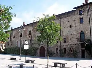 In the 15th century, Francesco Sforza consolidated the castle with the imposing buttresses, elevated over the Muzza canal and brick-made. The castle later passed to the d'Adda family and then to the Borromeo family, which motivates the name of Borromeo Castle occasionally given to it.[2]