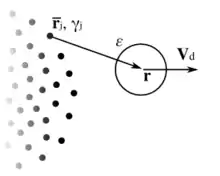 where i indexes domains in flow, ri — tracking point of domain and γi — his circulation. δ is a so-called "radius of discreteness" — small value that smooths the vortex and helps to get rid of singularity in the domain tracking point.[6] It equals to mean distance between domains.