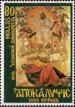 The image became popular in the media. It has been featured in countless films, books, newspaper articles, and magazines. It has become an icon representing the book of revelation. In 1995, the Hellenic Republic featured the iconic image on a stamp that circulated throughout the country. It is one of the most common representations of the Revelation of John the Evangelist in the world.[7][8]