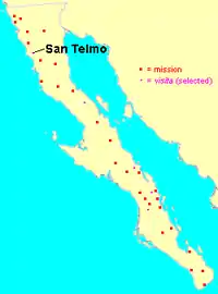 Location of the Visita de San Telmo among the Spanish missions in Baja California