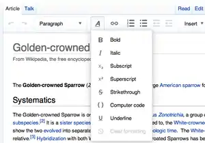 ![]() VisualEditor's text formatting menu | |