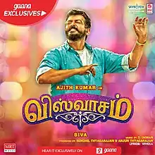 In response to the request of Ajith Kumar's fans, the makers released a single track from the film on 10 December 2018,[28] titled "Adichuthooku" which was sung by the composer D. Imman, Aditya Gadhvi and Narayanan, with lyrics written by Viveka.[29] The Indian Express stated that "The song is filled with catchy phrases, which talks about the innate valor of Maduraikaran (a native of Madurai)".[30] The second single "Vettikattu" sung by Shankar Mahadevan and lyrics written by Yugabharathi,[31] was released on 15 December 2018.[32] Lahari Music released the audio of Viswasam in YouTube and the music streaming platform Gaana which distributed the album online.[33][24] After the album release, Imman revealed that a rustic folk number (later deciphered as "Thalle Thillalley") sung by Anthony Daasan and lyrics by Arun Bharathi was released on 20 December 2018.[34]