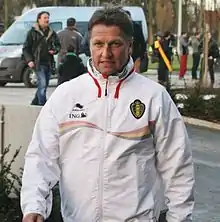 Vital Philomene Borkelmans (born 10 June 1963) is a Belgian football coach and a former left fullback who mainly played for Club Brugge (350 matches with that club), in the Belgian First Division. He also played for Patro Eisden, SV Waregem, Gent and Cercle Brugge. Vital played with Belgium and was in the team for the 1994 and 1998 World Cups. In January 2010, he was appointed manager of Dender EH in the Belgian Second Division, but fired following the relegation to the Belgian Third Division following the 2011–12 season. In July 2012, Vital Borkelmans was revealed as assistant manager to Marc Wilmots for the Belgium national football team.[1]