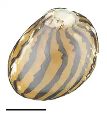 Abapertural view of a shell of Vittina coromandeliana. Scale bar is 10 mm.