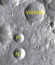 By convention these features are identified on lunar maps by placing the letter on the side of the crater midpoint that is closest to Viviani.