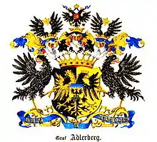 Count Vladimir Fyodorovich Adlerberg I (born Eduard Ferdinand Woldemar von Adlerberg (Russian: Граф Владимир Фёдорович Адлерберг 1-й) 21 November 1791 – 29 March 1884) was a general in the Imperial Russian Army and a Russian government minister. The son of a Swedish colonel of the Swedish noble family Adlerberg which traces its lineage back to the archbishop of Uppsala, Olov Svebilius whose children were ennobled Adlerberg.