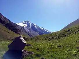 Vladimir Putin Peak (Kyrgyz: Владимир Путин атындагы чоку,[1] Russian: Пик Владимира Путина) is a mountain of the Kyrgyz Ala-Too Range mountain range in the Tian Shan system. It is located in the Chuy Region of Kyrgyzstan. It was named on 17 February 2011 after the second president of the Russian Federation Vladimir Putin; it was previously unnamed.[2]
