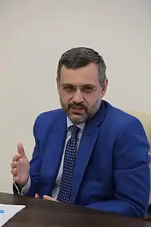 Vladimir Romanovich Legoyda (Russian: Владимир Романович Легойда; born 8 August 1973) is a Russian public figure, journalist, university professor, expert in cultural studies, political science and religious studies. He is Candidate of Political Sciences and professor of the Department of World literature and culture, Moscow State Institute of International Relations;[1] co-founder, editor-in-chief of Foma magazine,[2] Chairman of the Department for Church's Society and Mass Mediа Relations (Russian Orthodox Church)[3][4] and Acting Head of the Press Service of the Patriarch of Moscow and all Rus'.