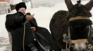 In the video, Zhirinovsky claimed that the "little wretched donkey" is the symbol of Russia and that if he would become President a "daring troika" would return as a symbol of the country, which "got stuck" at one place just as the donkey. After this, Zhirinovsky whipped the animal to move the sleigh across the snow-covered backyard of his dacha.