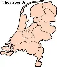 The Vlie or Vliestroom is the seaway between the Dutch islands of Vlieland, to its southwest, and Terschelling, to its northeast. The Vlie was the estuary of the river IJssel in medieval times. In 1666 the English Admiral Robert Holmes burnt a Dutch merchant fleet of 130 ships (Holmes's Bonfire), that had taken refuge in the Vlie, mistakenly supposing the English could never find their way through the treacherous shoals along its coastline. Today it's still possible to reach the port of Harlingen by way of the Vlie.