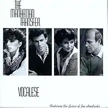 Vocalese is the ninth studio album by Jazz band The Manhattan Transfer, released in 1985 on the Atlantic Records. Recording sessions took place during 1985. Production came from Tim Hauser and Martin Fischer. This album is considered to be The Manhattan Transfer's most critically acclaimed album. It received 12 Grammy nominations, making it second only to Michael Jackson's Thriller as the most nominated individual album. It also received extremely high ratings from music critics, including a 4.5 out of 5 stars rating from Allmusic. The album peaked at number 2 on the Top Jazz Albums and number 74 on the Billboard 200. The album's title Vocalese refers to a style of music that sets lyrics to previously recorded jazz instrumental pieces. The vocals then reproduce the sound and feel of the original instrumentation. Jon Hendricks, proficient in this art, composed all of the lyrics for this album.