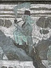 Bolotnik (Russian: боло́тник) is the owner of the swamp. He is often considered a relative of the vodyanoy and the leshy. There are many descriptions of him, but most often he was imagined as an old man with long green beard and his body covered in fish scales and algae. The bolotnik is dangerous, and he would pose an especially huge threat to those who play shepherd's pipe at night. In order to lure the person to the swamp, he would parody the sounds of various animals, create wandering lights and grow intoxicating plants. This spirit is often said to be a loner, although in some beliefs he has a wife, a bolotnitsa.[2]