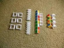 The Void Cube is a 3-D mechanical puzzle similar to a Rubik's Cube, with the notable difference being that the center pieces are missing, which causes the puzzle to resemble a level 1 Menger sponge. The core used on the Rubik's Cube is also absent, creating holes straight through the cube on all three axes. Due to the restricted volume of the puzzle it employs an entirely different structural mechanism from a regular Rubik's Cube, though the possible moves are the same. The Void Cube was invented by Katsuhiko Okamoto. Gentosha Education, in Japan, holds the license to manufacture Void Cubes.[1]