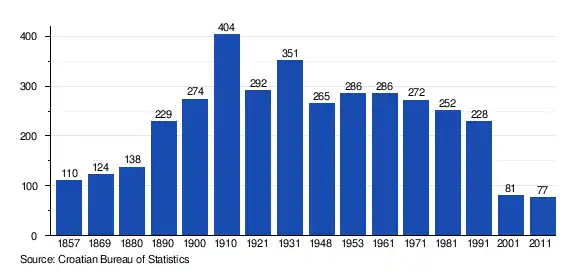 The 1991 census[4] recorded that 91.67% of the village population were ethnic Serbs (209/228), 3.51% were ethnic Croats (8/228), 2.19% were Yugoslavs (5/228) and 2.63% were of other/unknown ethnic origin (6/228).