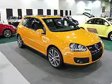 The Volkswagen Golf Mk5 (codenamed Typ 1K) is a compact car/small family car manufactured and marketed by Volkswagen, as the fifth generation of the Golf in three- or five-door hatchback (August 2003–2008) and a five-door station wagon (2007–2009) configurations, as well as the successor to the Golf Mk4. Using the Volkswagen Group A5 (PQ35) platform, the Mk5 debuted at the Frankfurt Motor Show in October 2003 and went on sale in Europe for the 2004 model year.[5] Marketed as the Volkswagen Rabbit in the United States and Canada, the GTI model in these countries was marketed simply as the Volkswagen GTI.