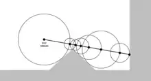 • In SDF ray marching, or sphere tracing,[4] an intersection point is approximated between the ray and a surface defined by a signed distance function (SDF). The SDF is evaluated for each iteration in order to be able take as large steps as possible without missing any part of the surface. A threshold is used to cancel further iteration when a point has reached that is close enough to the surface. This method is often used for 3D fractal rendering.[5] As powerful gpu hardware became more widely available, this method was popularized by the PC Demo Scene and Inigo Quilez.