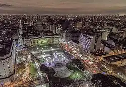 President Mauricio Macri encouraged the discussion of an abortion law during the 2018 opening of regular sessions of the National Congress of Argentina.[15] After some months of abortion debate in the media, the bill was approved by the internal commissions of the Argentine Chamber of Deputies for general legislation, health, penal legislation, and family. It was approved by 64 to 57 votes, which allowed it to be discussed by the chamber itself.[16] The bill was approved by the Argentine Chamber of Deputies by a narrow margin of 129 to 125 votes. The proposal divided both the legislators of Cambiemos and the Justicialist Party.[17] The project was again approved by the internal commissions to be debated in the Chamber of Deputies in 2019.