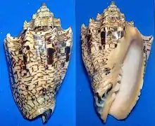 Voluta ebraea, common name the Hebrew volute, is a species of medium-sized sea snail, a marine gastropod mollusk in the family Volutidae, the volutes. The Hebrew volute is endemic to Brazil, where it is collected both for food and for its shell, which is highly desired for ornamental purposes. Recent studies indicate that natural populations of Voluta ebraea may be suffering declines due to overfishing and overexploitation.