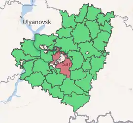 Volzhsky District (Russian: Во́лжский райо́н) is an administrative[1] and municipal[7] district (raion), one of the twenty-seven in Samara Oblast, Russia. It is located in the center of the oblast. The area of the district is 2,481 square kilometers (958 sq mi).[3] Its administrative center is the city of Samara[2] (which is not administratively a part of the district).[10] Population: 83,377 (2010 Census);[4] 77,621 (2002 Census);[11] 64,974 (1989 Census).[12]