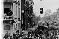 During the 1970s, squatting became increasingly prevalent in Amsterdam due to the lack of housing and the high number of decayed buildings in the city centre. Many of the squatters occupying land were youngsters from the baby boom generation, having trouble finding homes to live in. A previous riot in Amsterdam happened in 1966. Authorities did little to stop them before the events of 1980.[1] Many riots occurred between the squatters and the authorities (overall referred to as Krakersrellen), the biggest being the Nieuwmarkt Riots in 1975.