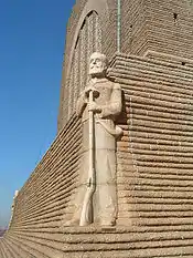 The Voortrekker Monument is 40 metres high, with a base of 40 metres by 40 metres. The building shares architectural resemblance with European monuments such the Dôme des Invalides in France and the Völkerschlachtdenkmal in Germany but also contains African influences.[3] The two main points of interest inside the building are the Historical Frieze and the Cenotaph.