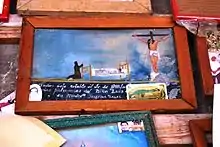 In Bolivia, the Mexican government sponsored an exhibition of 41 contemporary votive painting artists’ works in that country's national museum of art, called “El exvoto religioso y sus opciones contemporáneas” (The religious ex voto and its contemporary options).[3]