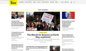 The website's launch received significant media attention.[47] Websites noted that the launch came around the same time as other data and explainer websites like FiveThirtyEight and the New York Times' The Upshot.[48][49] Vox was described as using clickbait-style headlines to enhance shareability and to act as a "Wikipedia for ongoing news stories".[47]