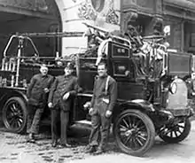 Through his previous experience as a parcel post truck driver, Williams had become proficient in the operation of motor vehicles. It was at this point in the history of the Department, horses were being replaced by two-wheel Christie tractors,[11] thus motorizing both steamers and aerial trucks. An 84-hour work week came into being, a system that was to remain practically unchanged until 1939 when the three-platoon eight-hour plan was adopted. The shortage of firemen who possessed the mechanical ability to operate the new gasoline-driven tractors led to Williams being asked to take the apparatus out of quarters[12] and then back it in. He executed the maneuver so expertly he was assigned as the apparatus driver. This assignment caused much resentment against Williams among the members of Engine 55.