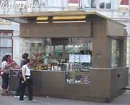 A Würstelstand (literally "sausage stand"; plural Würstelstände) is a traditional Austrian street food retail outlet selling hot dogs, sausages, and side dishes.[1] They are a ubiquitous sight in Vienna.[2]