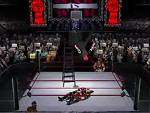 Additional characters, along with arenas, as well as moves and costumes to be used in the game's create-a-wrestler mode are unlockable in the new "Smackdown Mall". Players earn in-game currency through regular play that they can spend to unlock these in-game items. One way players can earn currency is through the game's new single player Championship Mode, which tasks players with winning one of the WWF's championship titles.[4] There are seven selectable storylines to play through, one for each of the available championships. Each storyline features branching paths that are reached depending on players' decisions made during the story or whether they win or lose certain matches. In-game currency can also be earned by playing the game's survival mode, in which players attempt to defeat as many opponents as possible. Players can compete in various match types in both Championship and Exhibition modes, including the newly added ladder match. As in the previous Nintendo 64 titles, up to four players can compete in the same match. The game also features new arenas to wrestle in, as well as introducing backstage areas in which players can brawl using various weapons and objects in the environment.[5]