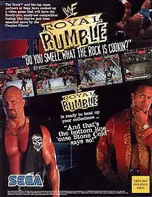 WWF Royal Rumble is a professional wrestling video game released in 2000 for arcades and the Dreamcast. THQ published the title for the Dreamcast while Sega released it for arcades. It is based on the World Wrestling Federation (WWF) professional wrestling promotion and its yearly Royal Rumble event.[2] Yuke's, creators of the WWF SmackDown! series developed Royal Rumble, which had several unique features including support for up to nine wrestlers on the screen simultaneously.[3]
