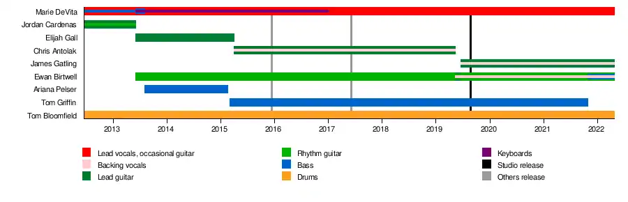 On 21 April, during a performance at The Cambridge Hotel in Newcastle, frontwoman Maz DeVita was reportedly assaulted by a crowd member. She later took to social media to discuss her outrage.[21][22] On 10 May, the band announced that they had parted ways with guitarist Chris Antolak.[23][24] In an interview with Australian Guitar Magazine, guitarist Ewan Birtwell refused to answer a question regarding Antolak's departure. "I’m sure in the future something will be said, but I don’t really know how to tackle that one right now," he said.[25]