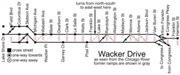 ![]() Wacker Drive highlighted in red | |||